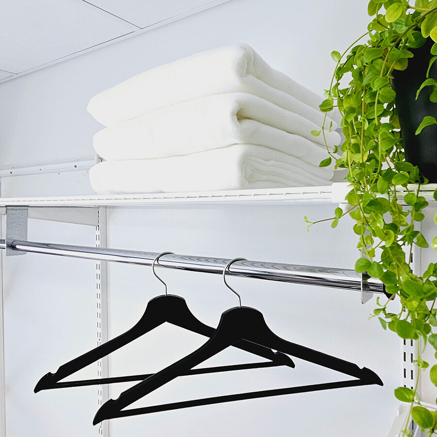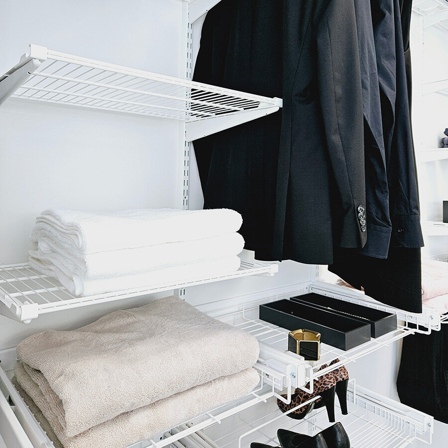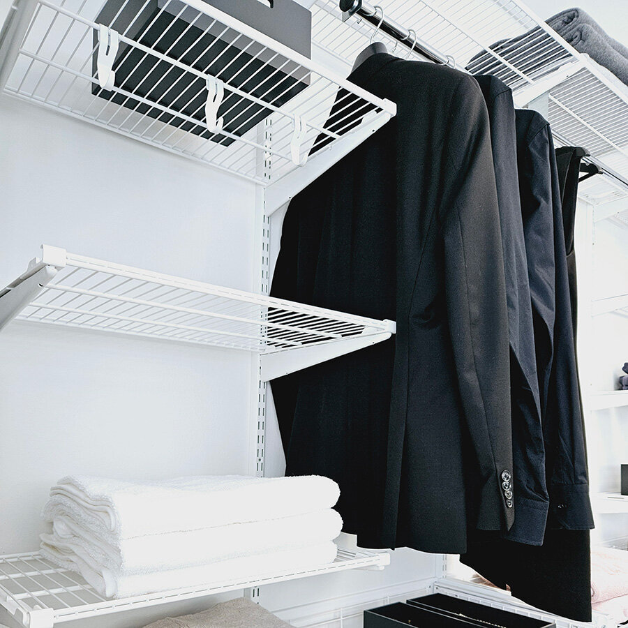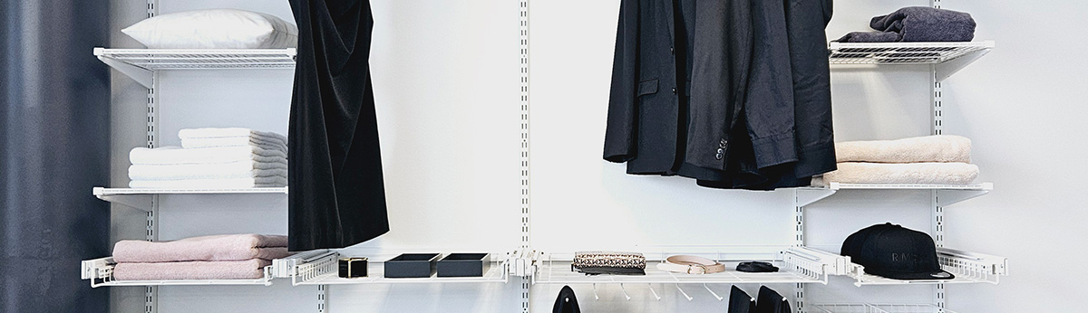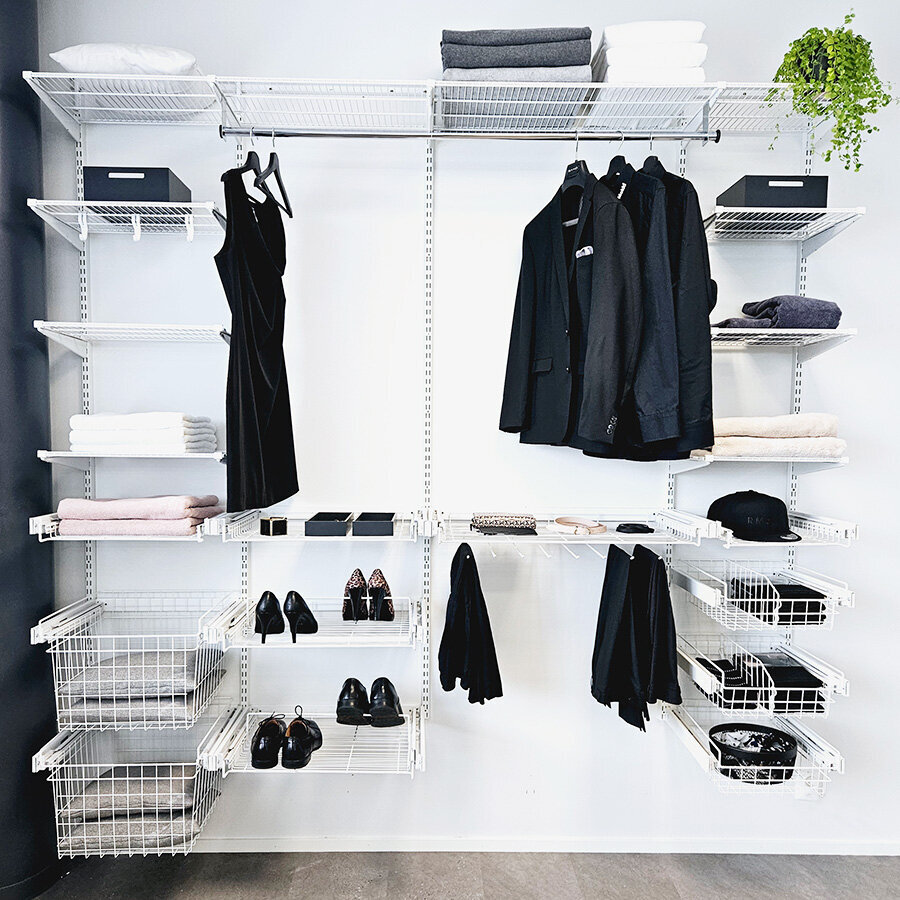 Täydellinen vaatesäilytys koostuu ripustusratkaisuista ja ilmavista lankahyllyistä sekä lankakoreista. Säilytysratkaisut kannattaa valita tarpeiden mukaisesti.