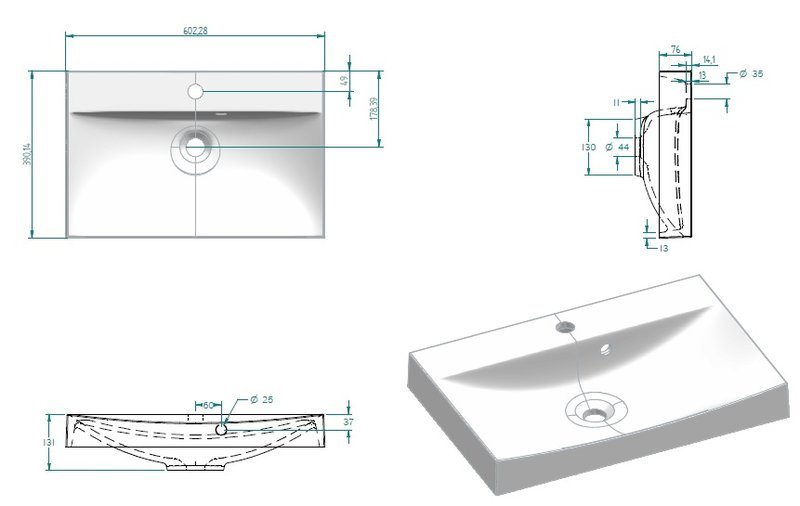 Materiaali: Valumarmori. Sisältää putkiston.