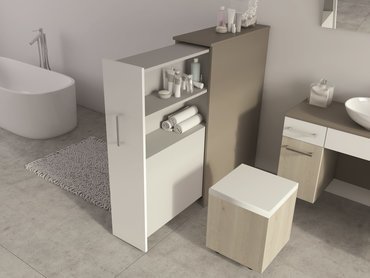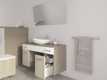 Täältä löydät ideoita, inspiraatiota ja suunnitteluvaihtoehtoja kylpyhuoneen ja kodinhoitohuoneen suunnitteluun. Myös kylpyhuoneen suunnittelussa on tärkeää muistaa tilojen käytännöllisyys. Kalusteet tulee miettiä niin, että tarvittaville tavaroille on paikka ja ne ovat helposti saatavilla joka päiväisessä käytössä. Alla ideoita Hettichin tuotteilla toteutettuihin erilaisiin kokonaisuuksiin.