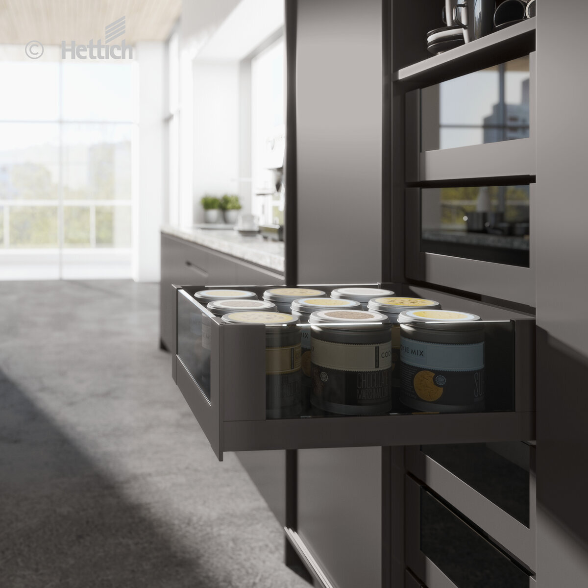 Hettich AvanTech YOU laatikoilla voit ideoida persoonallisen ja juuri sinun tarpeisiisi sopivan säilytysjärjestelmäkokonaisuuden.
