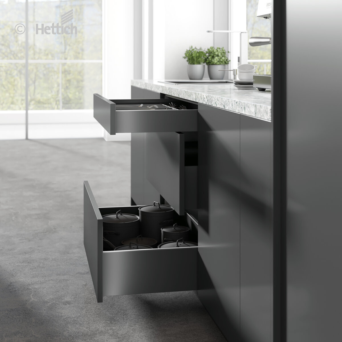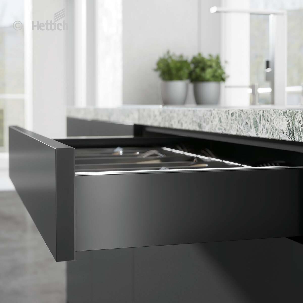 Väri: antrasiitti. Hettich AvanTechYOU laatikkoon