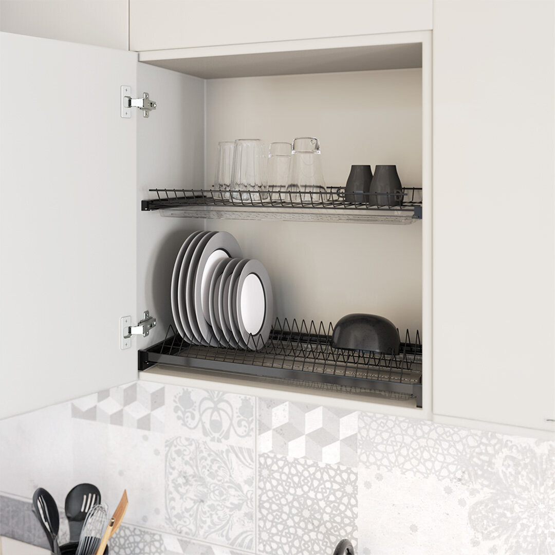 Tyylikkkään musta Variant 3 lautas- ja tasohyllysetti sisältää lautashyllyn, hyllyn, kannattimet sekä tippuvesisuojat.  Saatavilla kuudessa eri koossa. Vesisuojat helposti irrotettavissa.