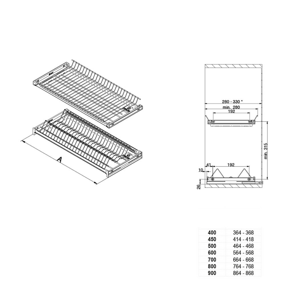 Lautas- ja tasohyllysetti tippuvesialtailla, Väri:musta Leveydet: 400-900 mm
