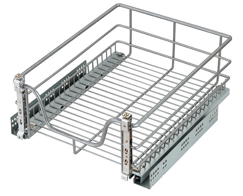 Jykevä kori soft close -kiskoin. Kiskot pikakiinnitysellä koriin.