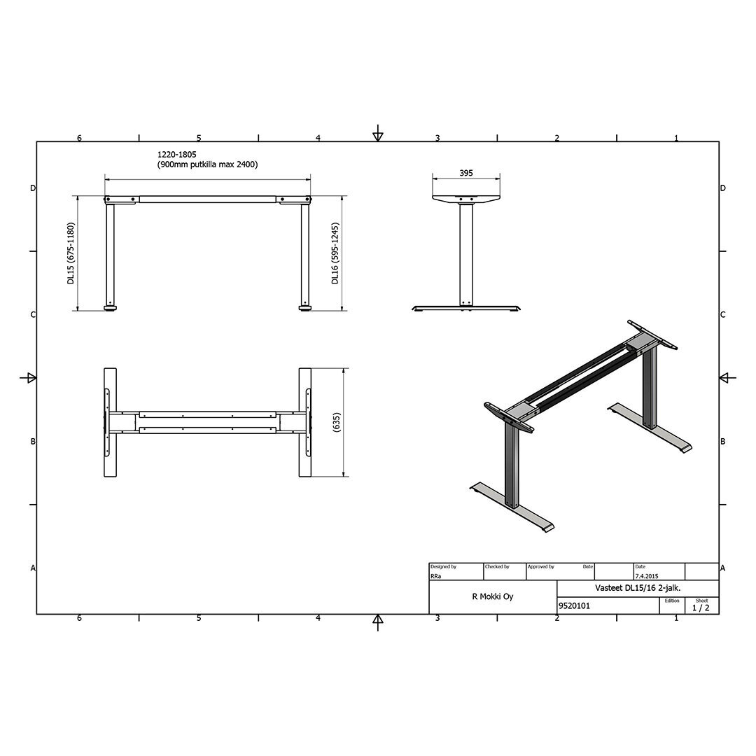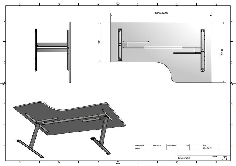Ilmoita tilauksen yhteydessä sähköpöydän leveys, väliputken pituus määräytyy kannen leveyden mukaan!