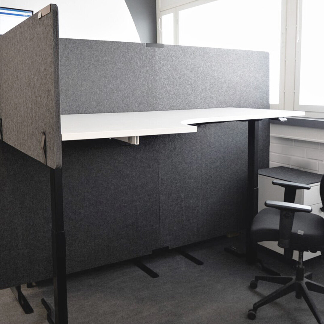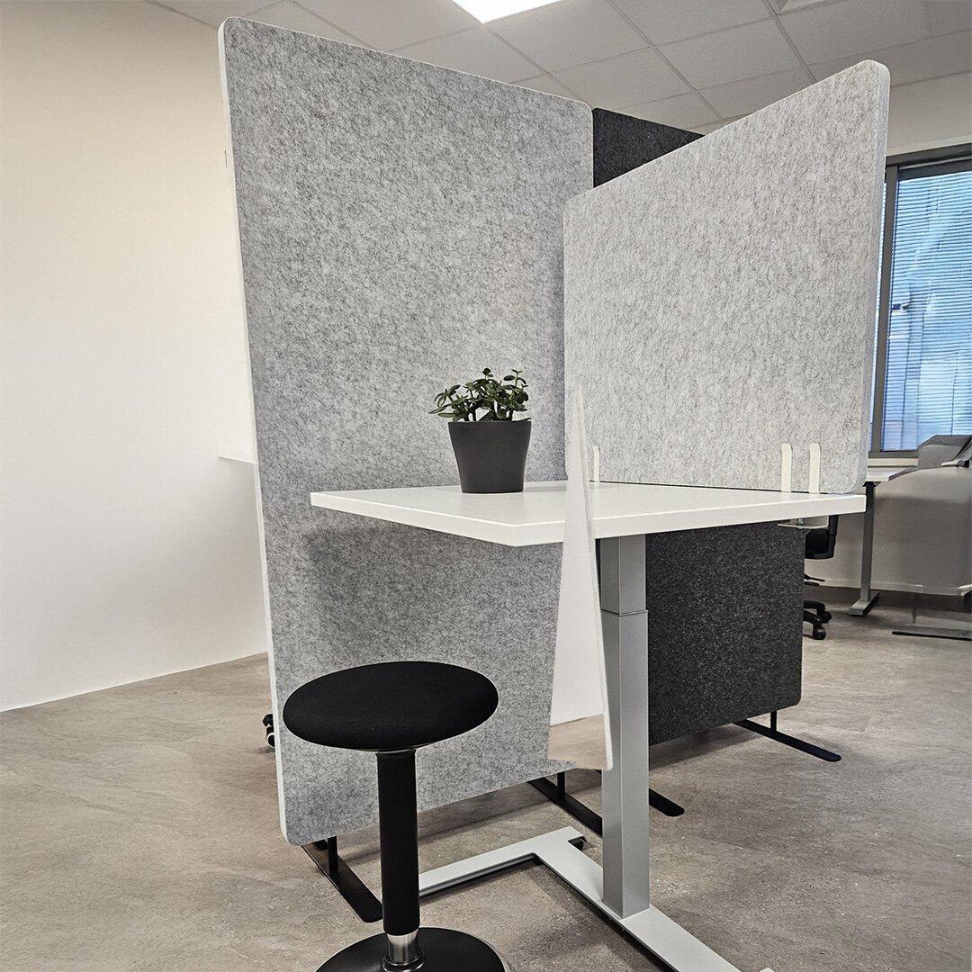 Työskentely avokonttorissa voi olla haastavaa, kun tarvittavaa työrauhaa voi olla vaikeaa saada. Siistit ja tyylikkäät lattiasermit toimivat näköesteenä, vaimentavat hälinää ja tekevät näin työskentelystä rauhallisempaa sekä luovat viihtyvyyttä toimistoon