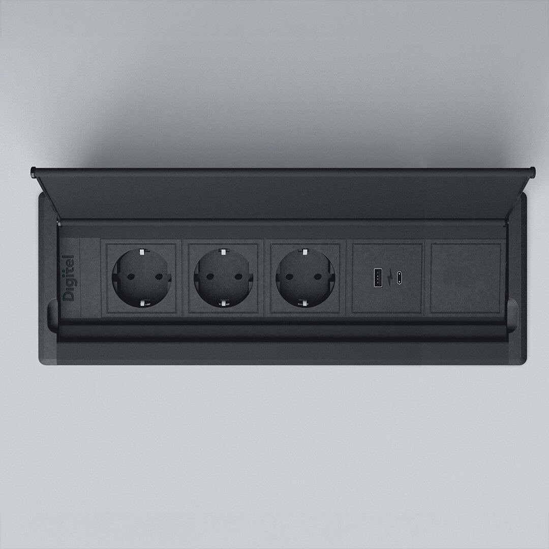3396Kompakt S 5310x93mmMusta3 x Schuko + 1 x USB-A / 1 x USB-C + vapaa
