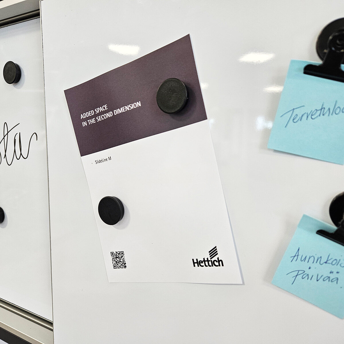 Galvanoidun teräskerroksen ansioista magneetti tarttuu levyyn. Toinen puoli on mattavalkoinen ja digitaalisesti tulostettava. Toinen puoli whiteboard on kiiltävä valkoinen ja sitä voidaan käyttää tussitauluna.