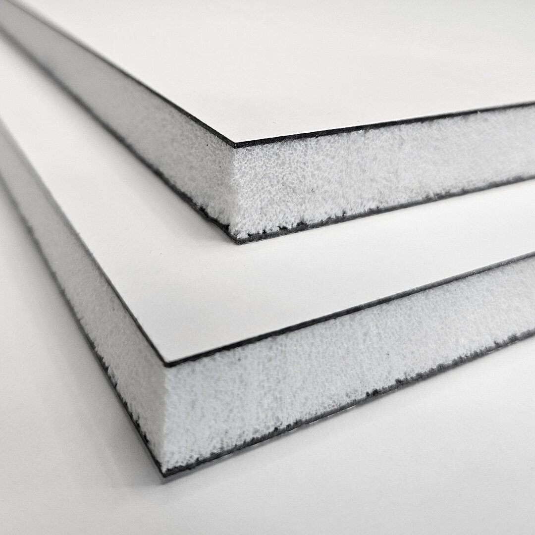 Pet-White on vedenkestävä valkoisella 1 mm HPL:lla pinnoitettu PET-muovi (polyeteenitereftalaatti)<sup> </sup>levy. Se on äärimmäisen kevyt ja jäykkä vedenkestävä levymateriaali.