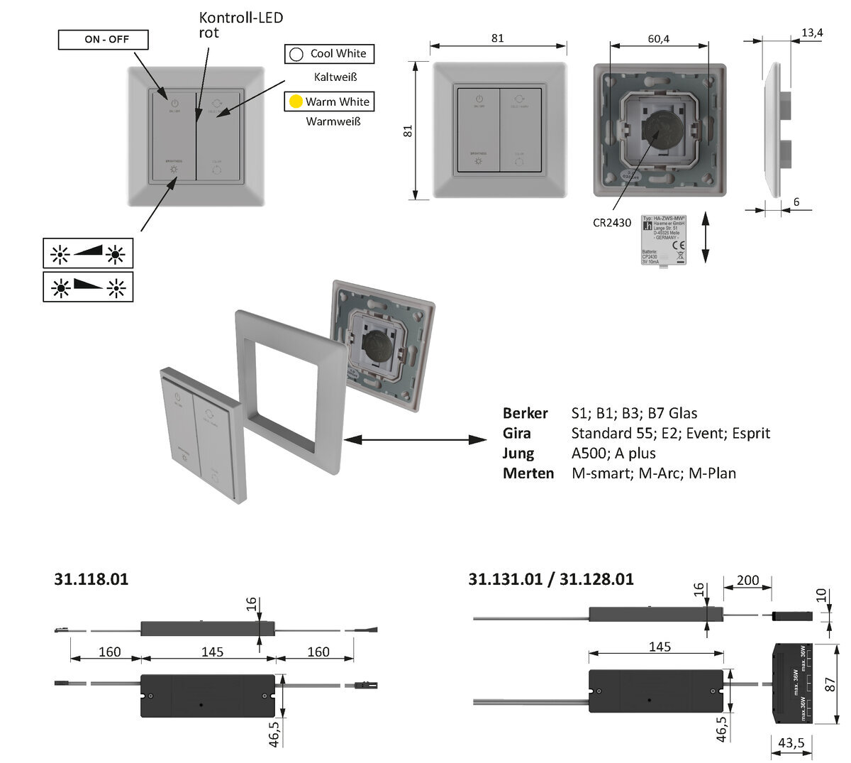• Sopii johtavien kytkinvalmistajien asennuskehyksiin