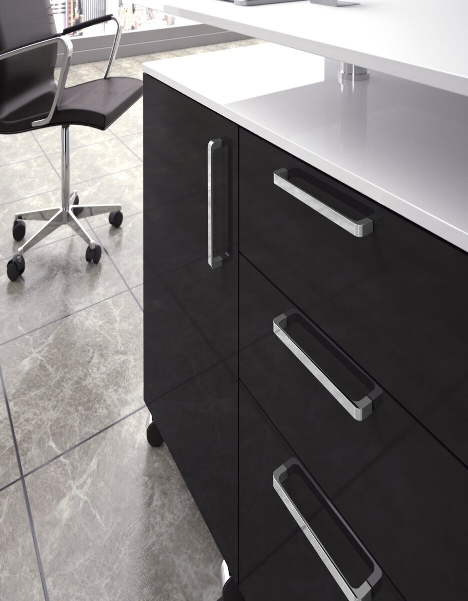 Materiaali: samakki Väri: musta, kromi